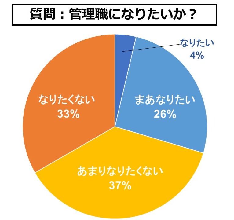 さらに、2024年にSWITCH WORKSで行った「昇進意欲に対する意識調査」で調査した結果、リーダー(管理職)への昇進意欲がかなり低いことが明らかとなりました。(左図)