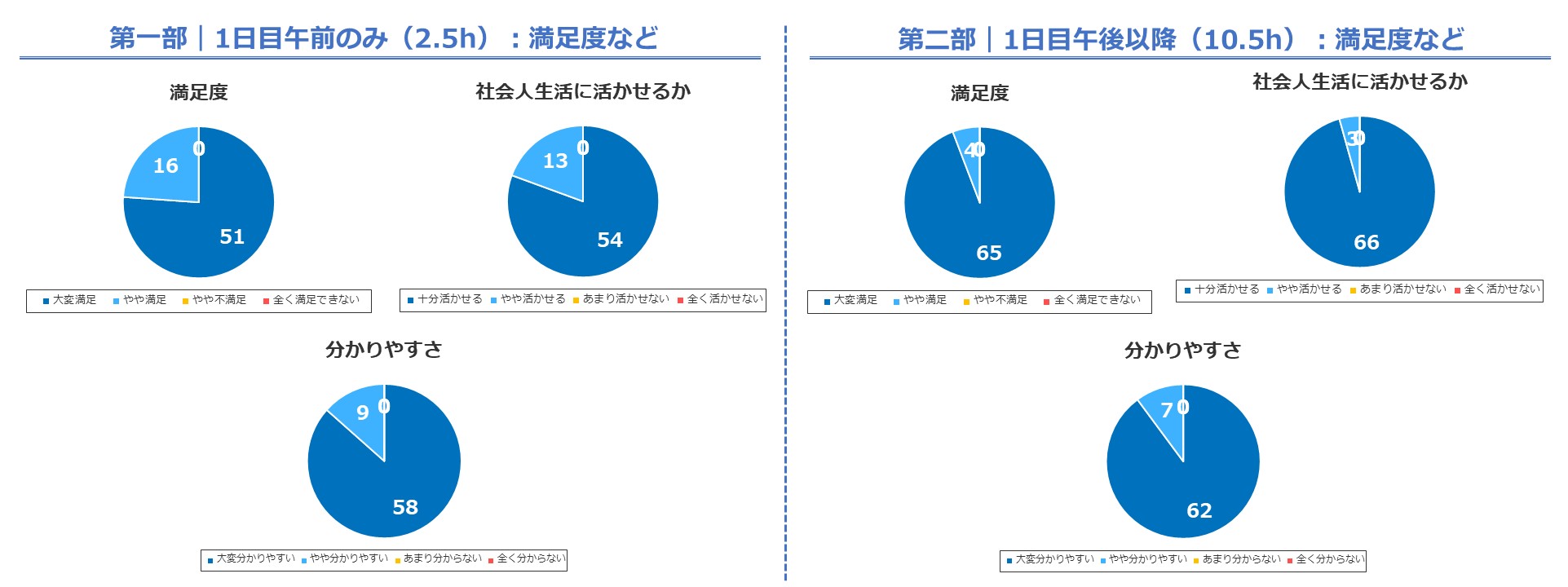 ・満足度の理由:スライドが非常にわかりやすく、自ら考える時間やグループ内で意見を交える時間もあったからです。これからのキャリアについて改めて考えることができ、とても満足しています。