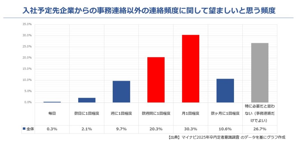 「入社予定先企業からの事務連絡以外の連絡頻度に関して望ましいと思う頻度(事務連絡を除く)」については、