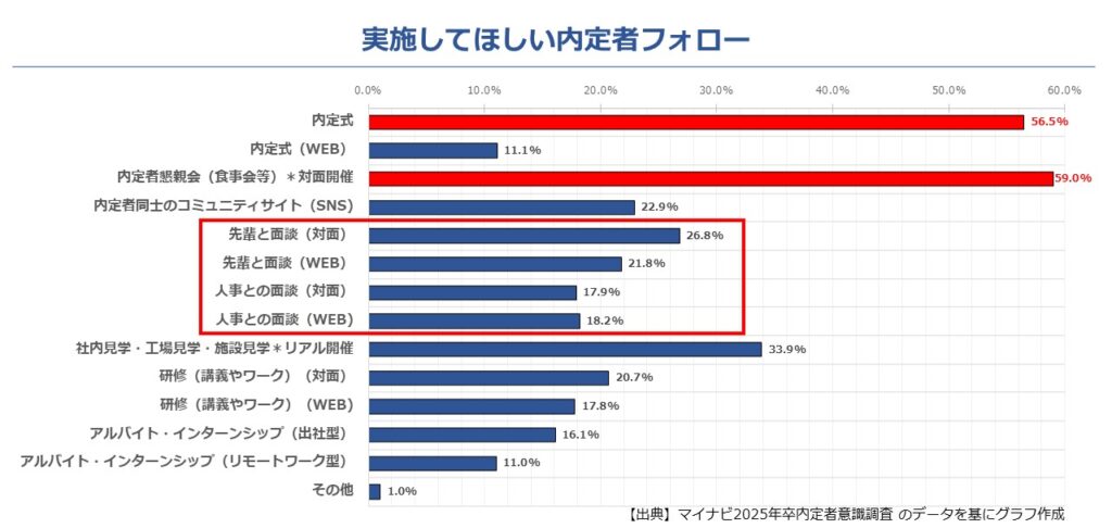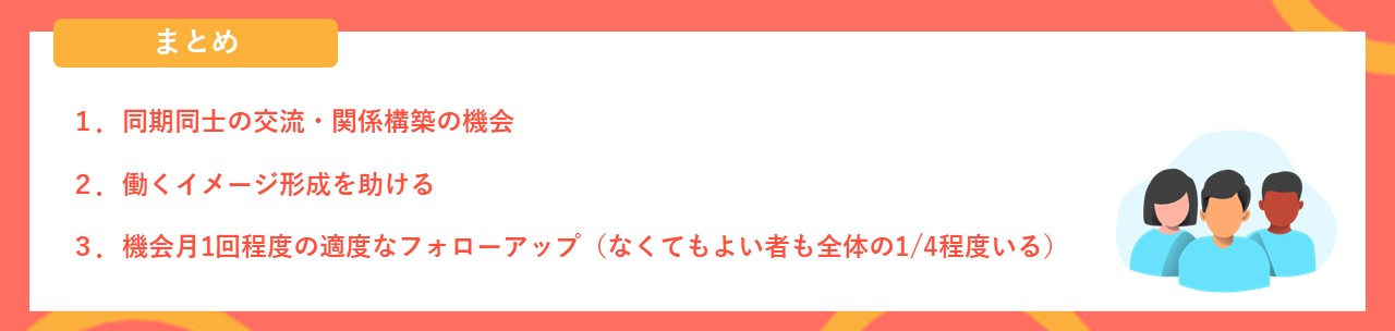 オンラインの「内定式」が低かったことからも、内定者は「どんな人たち(特に同期)と共に働くのだろうか」を知り、